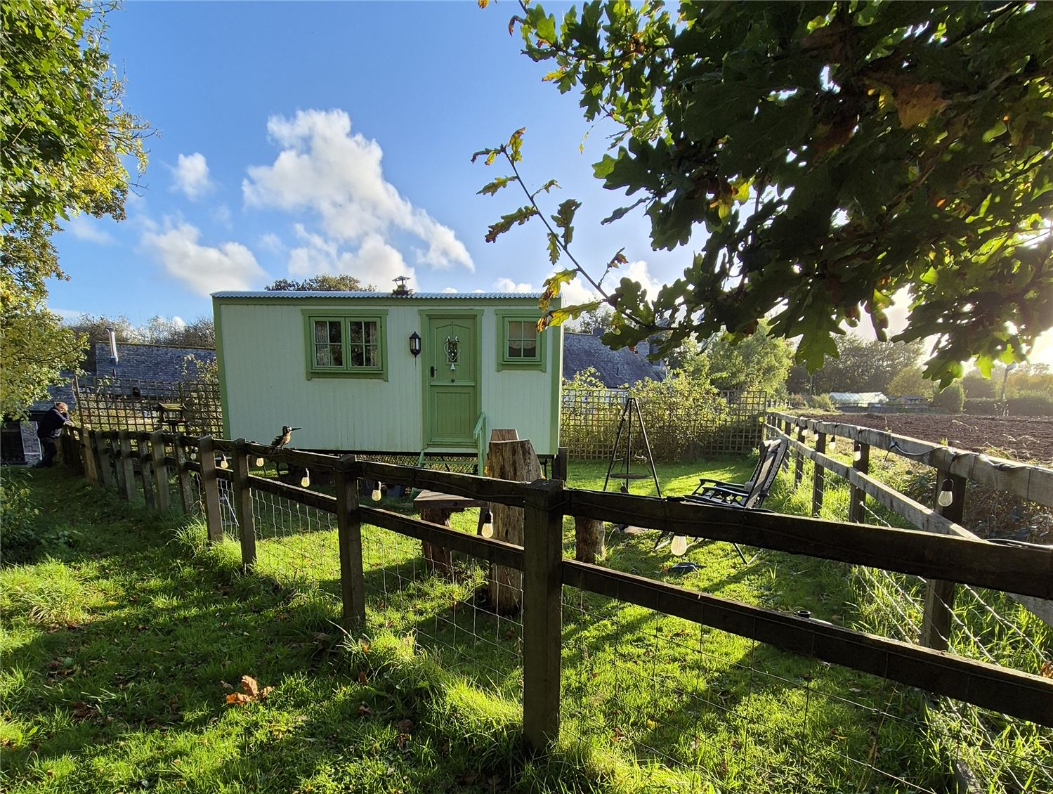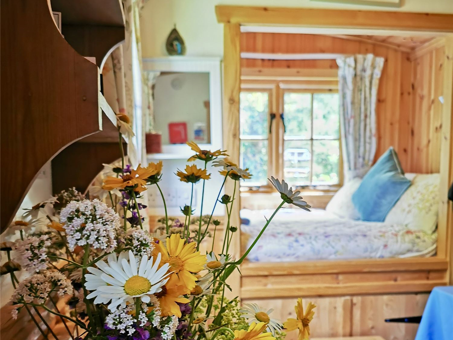 Magical shepherds hut right by the river. Bathroom and kitchen, private garden with firepit and undisturbed views.